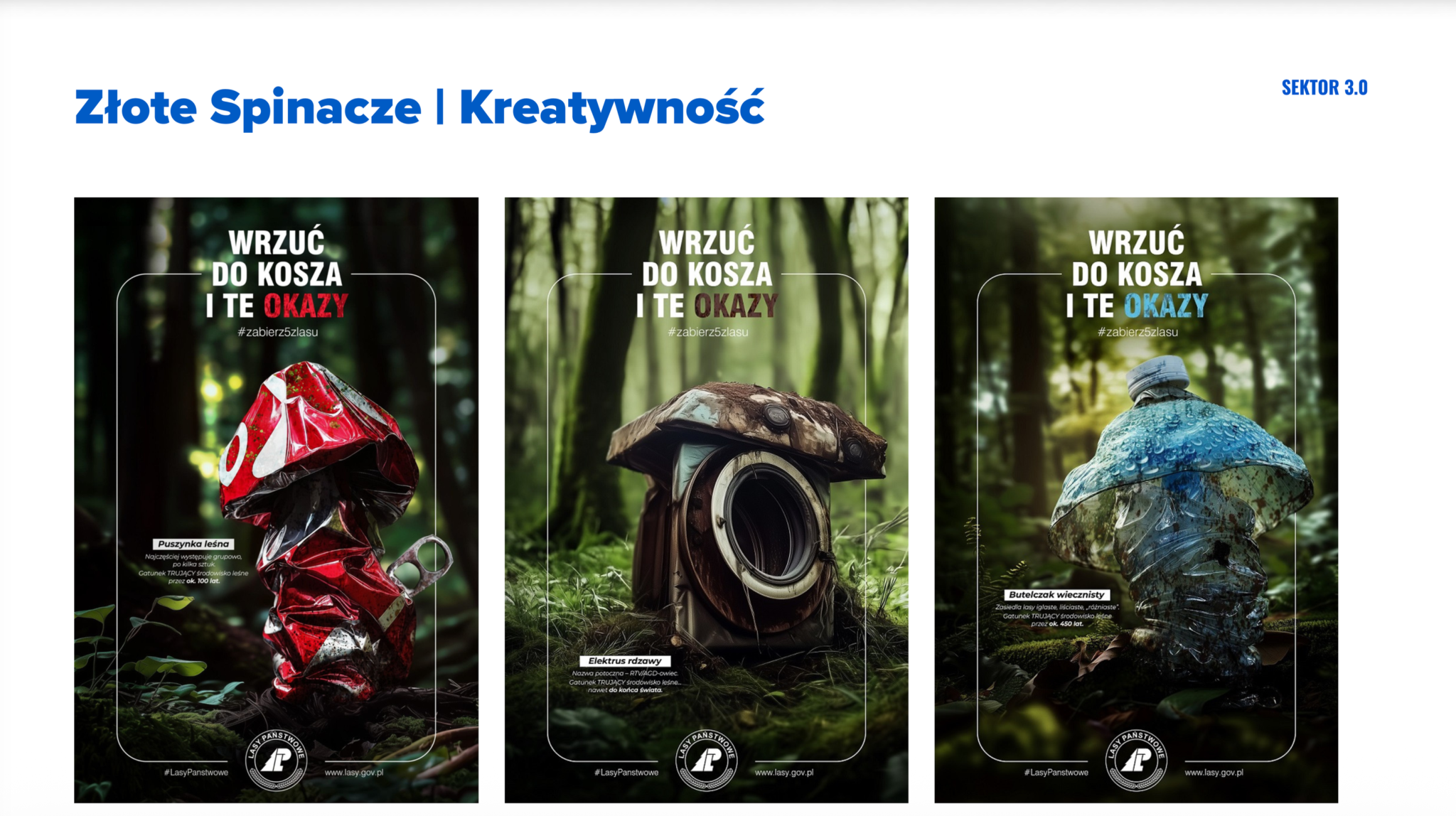 - Kreatywne kampanie, gdzie użycie AI jest jawne i stanowi element artystyczny (np. grzyby w kampanii Lasów Państwowych).