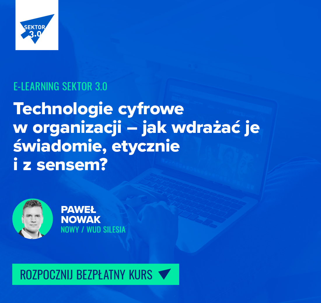 Dołącz do bezpłatnego kursu e-learningowego: Technologie cyfrowe w organizacji – jak wdrażać je świadomie, etycznie i z sensem?